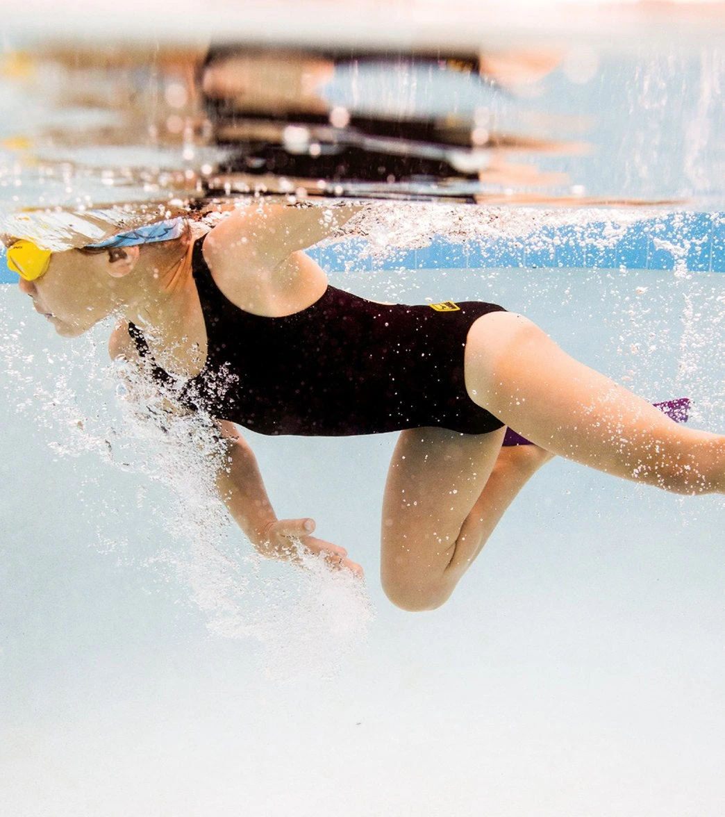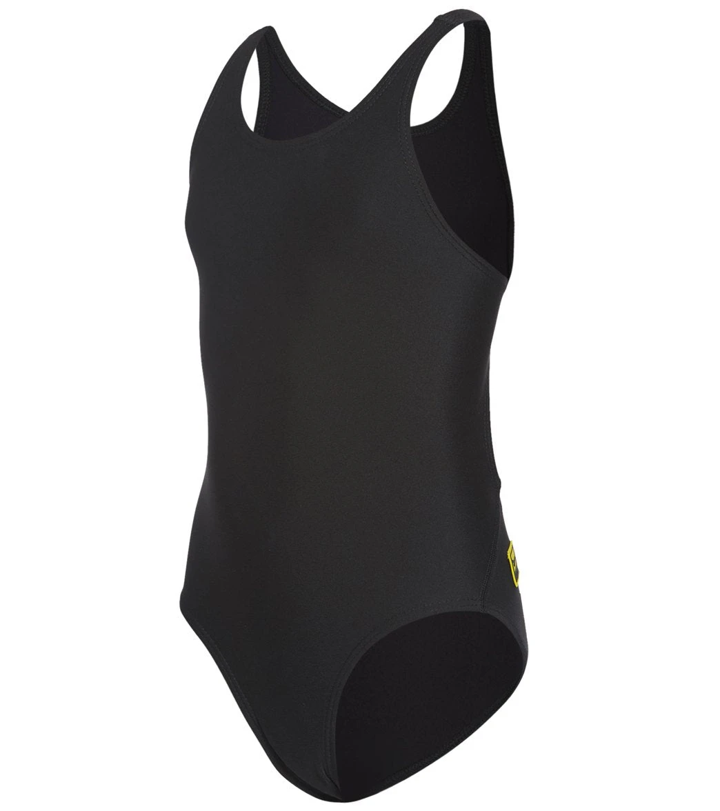 Learn to swim in the FINIS Girls’ Bladeback Solid One Piece Swimsuit.