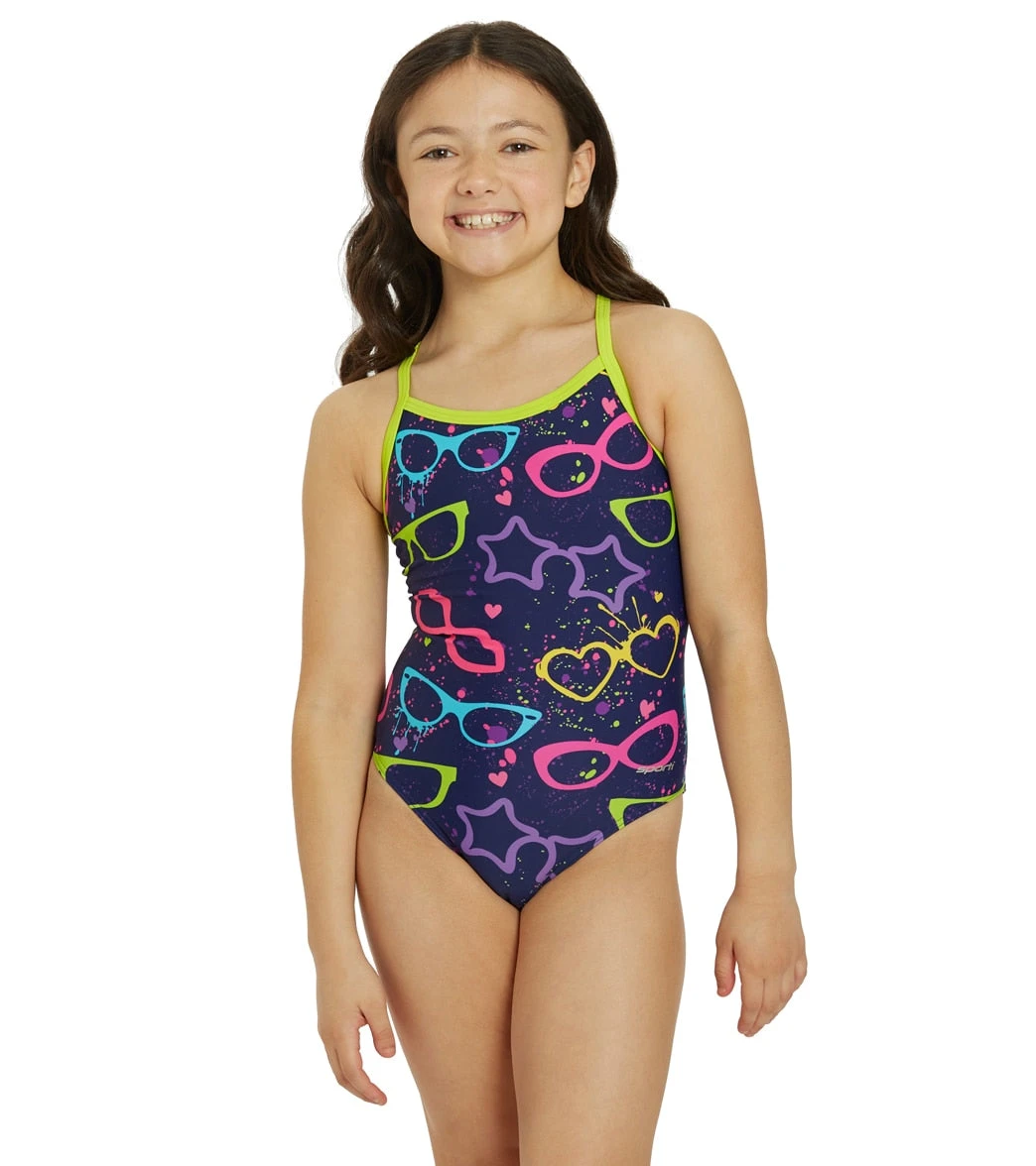 Keep it cool whether you’re in practice or tracking your laps in the Sporti Gotta Wear Shades Thin Strap One Piece Swimsuit Youth (22-28).