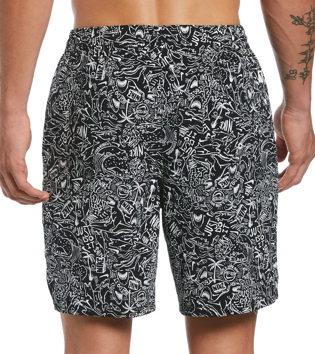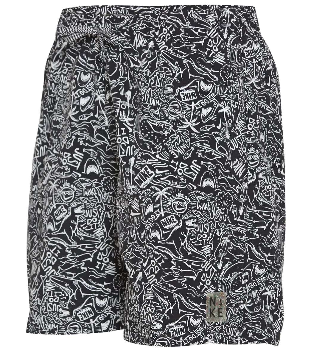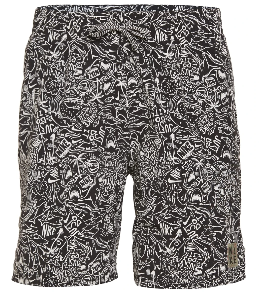 Hang out by the pool in the Nike Men’s 18″ Shark Swim Trunks featuring an allover graphic print.