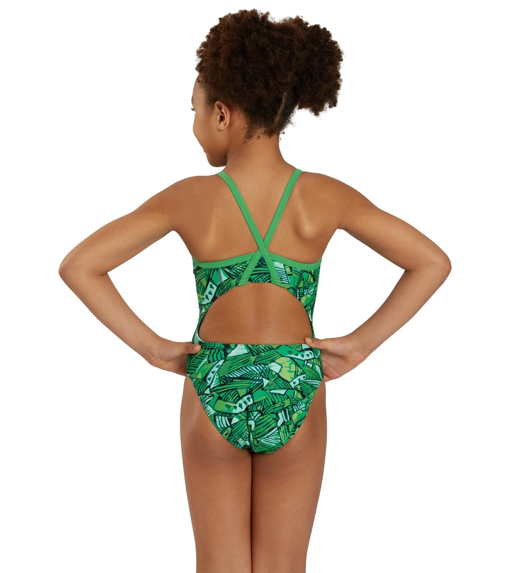Dive into practice with a new style in the Sporti Tribal Graffiti Thin Strap One Piece Swimsuit Youth (22 – 28), featuring a vibrant print and a Lycra Xtra Life construction for superior performance and a lasting fit.