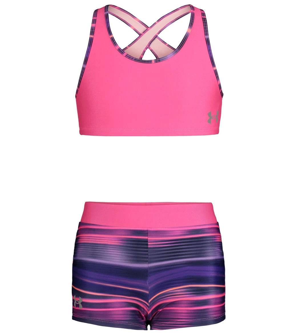 Get set to practive in the Under Armour Girls’ Beam Stripe Bikini Swim Short Set (Little Kid, Big Kid).